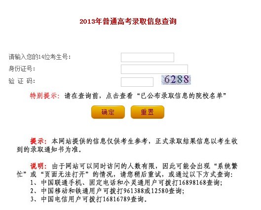 查詢網(wǎng)址:http://218.25.76.143/gkss.jsp