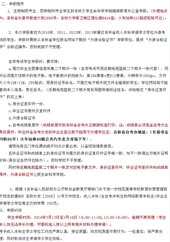2014年上吉林大學(xué)生命科學(xué)學(xué)院學(xué)位證書申請通知