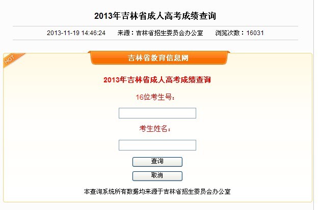 吉林省成人高考成績查詢時間:2013年11月19日