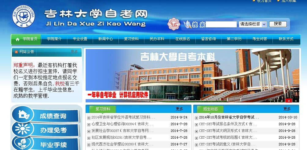 2014年10月吉林大學(xué)自考網(wǎng)成績查詢