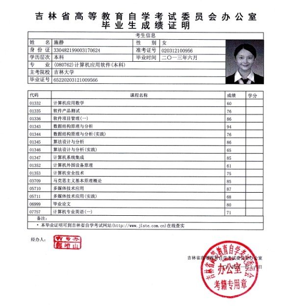 吉林大學(xué)及東北師范大學(xué)自考成績單適用于出國留學(xué),學(xué)歷認(rèn)證,公務(wù)員考試、公司檔案等。