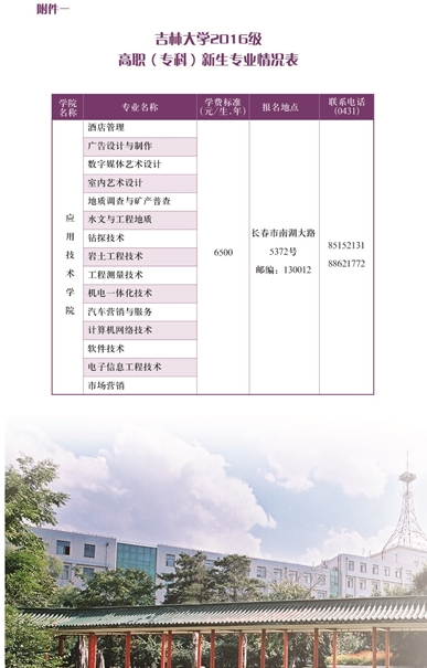 2016年吉林大學(xué)3年制??普惺諏I(yè)有那些