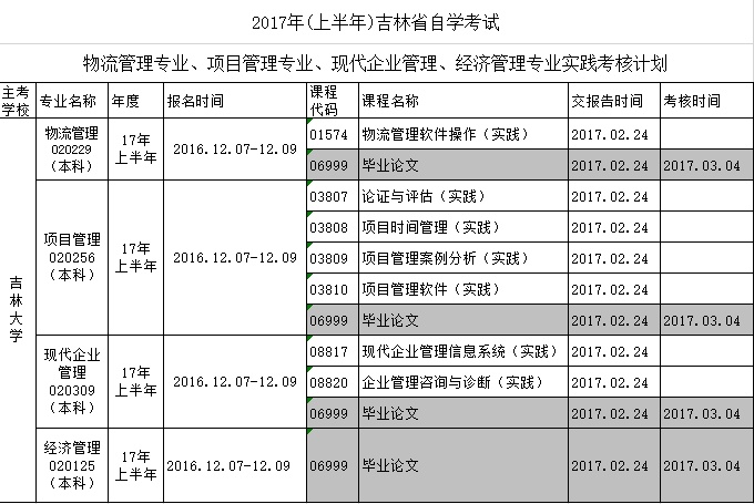 2017上半年吉林大學(xué)自考本科項(xiàng)目管理,現(xiàn)代企業(yè)管理,經(jīng)濟(jì)管理實(shí)踐論文報(bào)名時(shí)間地點(diǎn)