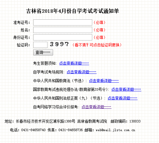 2018年4月吉林大學自考考場查詢通知單