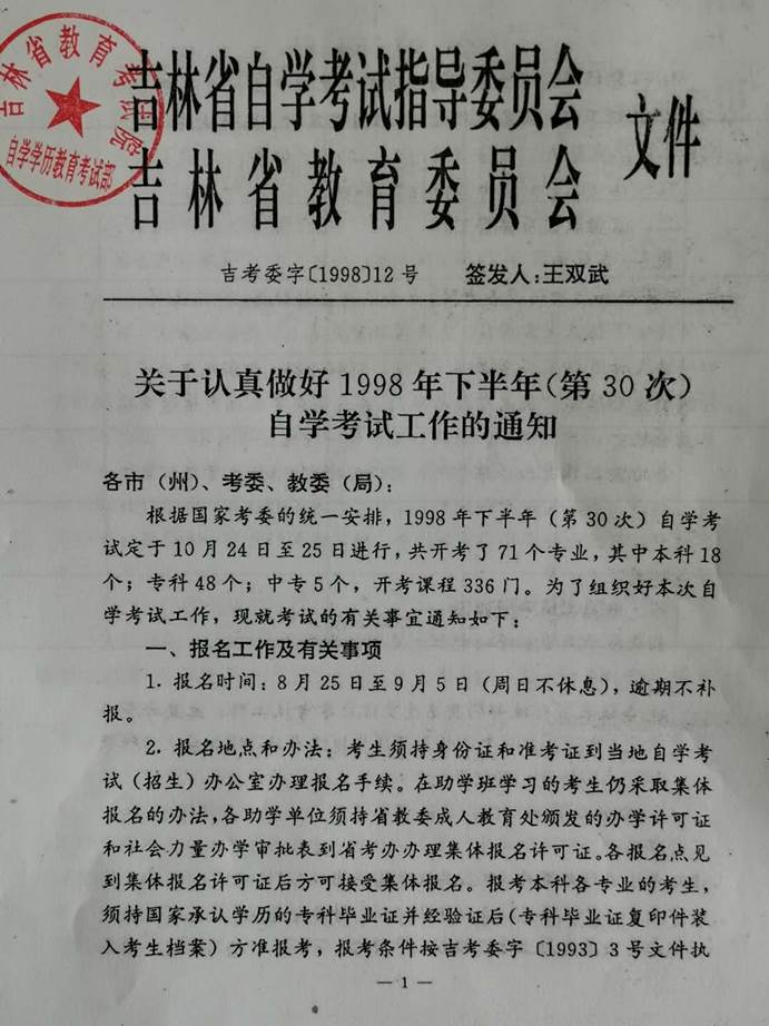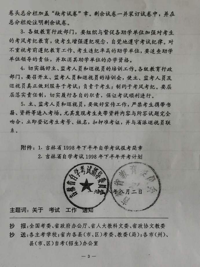 關(guān)于吉林省98年下半年自考考試工作通知:僅作為參考