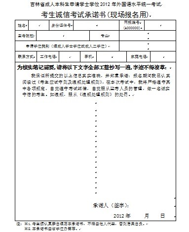 2012吉林省學(xué)位外語報(bào)名承諾書,什么是承諾書和他的內(nèi)容?