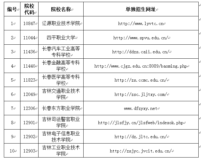 二、高職高專單獨招生院校名單及網(wǎng)址